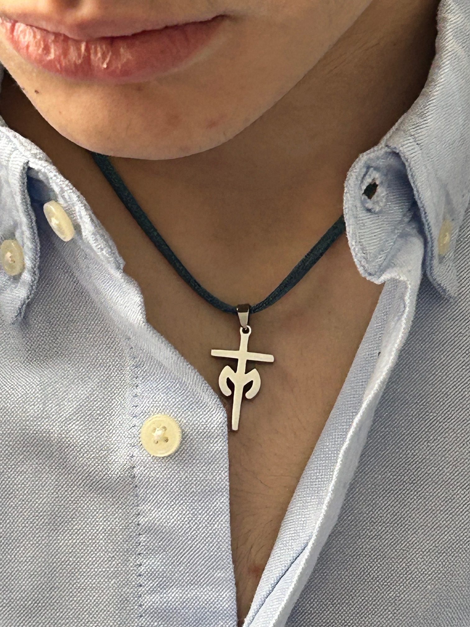 Collar con cruz marianista. El collar lleva la cruz marinista de 27 x 16 mm y 2 mm de grosor en acero y disponible en acero oro, acero rosa y acero color plata. El collar está hecho con cordón elástico y lleva cierre ajustable.