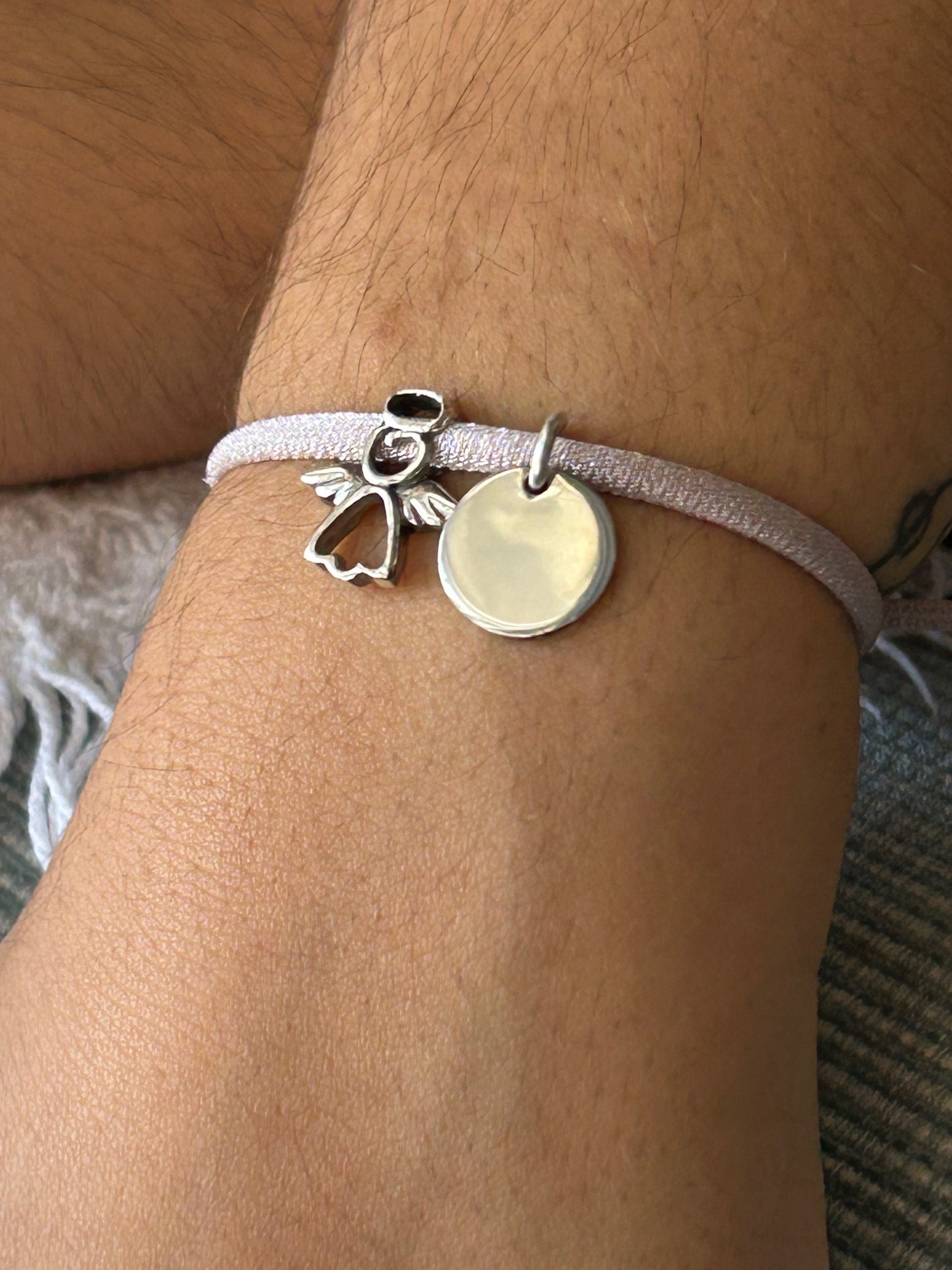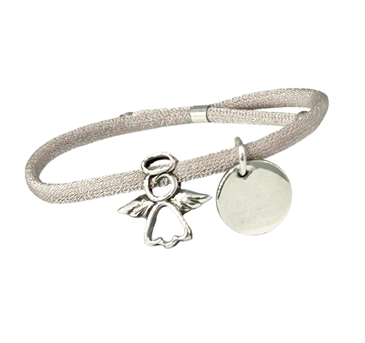 Pulsera para niña con angelito y medalla de 12 mm para personalizar, plata 925